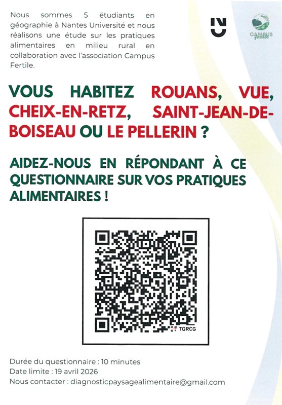 5 étudiants en géographie à Nantes université réalisent une étude sur les pratiques alimentaires en milieu rural et en collaboration avec Campus Fertile.